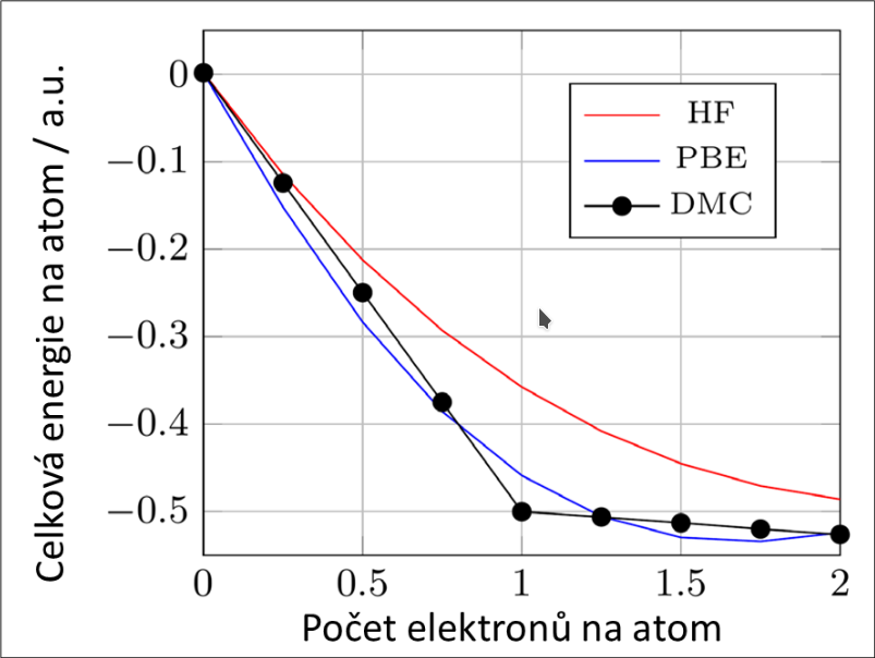 the basis 6-31++G(d,p), on specific low-spin models 8 H, 8 O and high-spin models 8 H, 8 O and 8 Fe composed of 8 atoms of the same element H, O, and, Fe, at least 1000 ̊A apart. The final results of the 8 H, 8 O and 8Fe models point to the failure of the DFT and HF methods in describing the fractional charge obtained from the convex or concave course of the function in a graph of total energy per atom versus number of electrons per atom. One of the parts of this work includes a demonstration of the fractional charge problem on the examples of the molecule FHand ion F−calculated separately in their own systems and together in one system,where they are 1000 ̊A apart. Calculations of the FH molecule and the F−ion by the DFT(B3LYP), DFT(PBE) and HF methods with a basis 6-31++G(d,p) separately and together led to results which indicate different energy values for individual methods. For the possible use of the results from this work, the possible applications of the obtained values from model 8H for the correction of the calculated energy on the model molecule H+2are presented. On the model molecule H+2it was possible to present way of correction by subtraction energy from the results of total energy calculated by DFT (B3LYP) and DFT (PBE), linear connection of boundary points of total energy function and exact solution. The results obtained thanks to this work can be further used for the development and correction of the DFT method when used in the calculations of many chemical reactions, which provide erroneous energy results depending on the fractional charge due to the error of charge delocalization.